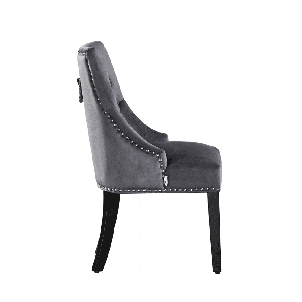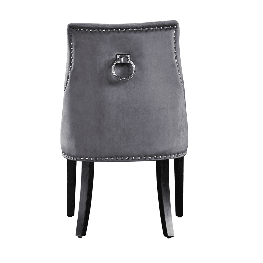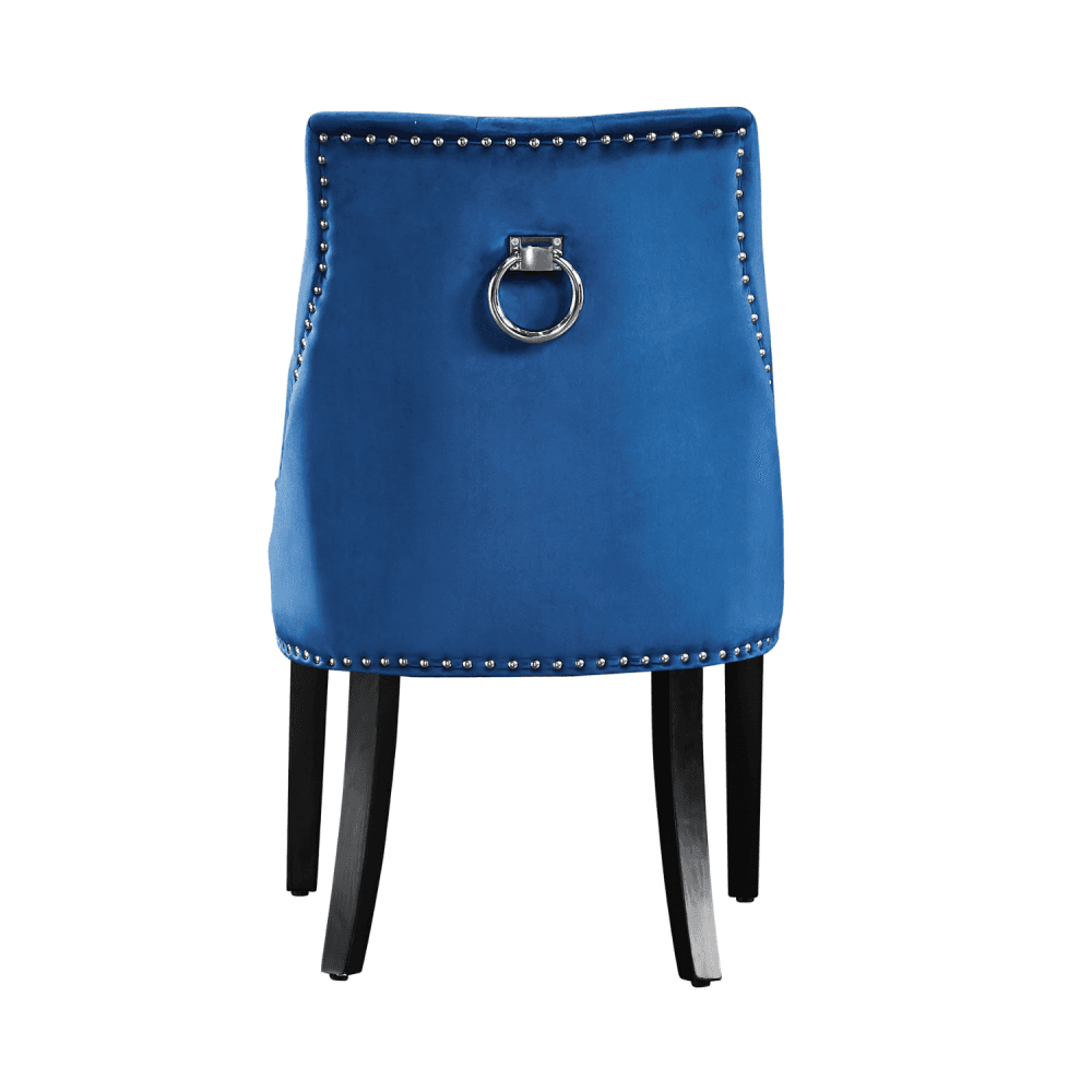 Paired with the Windsor Velvet Dining Chairs, this set exudes sophistication from every angle. Each chair features plush velvet upholstery, diamond tufting, elegant metal studs, and a decorative knocker handle on the back for a refined look. The padded seat and back provide exceptional comfort, while solid legs ensure long-lasting stability. From the intricate button detailing to the tasteful studwork, these chairs are the perfect blend of classic charm and modern luxury.